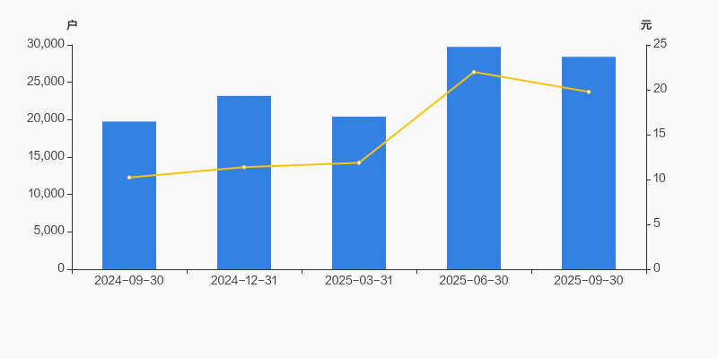 2024年9月30日至今,公司股东户数显著增长,区间涨幅为43.82%。2024年9月30日至2025年9月30日区间股价上涨93.42%。