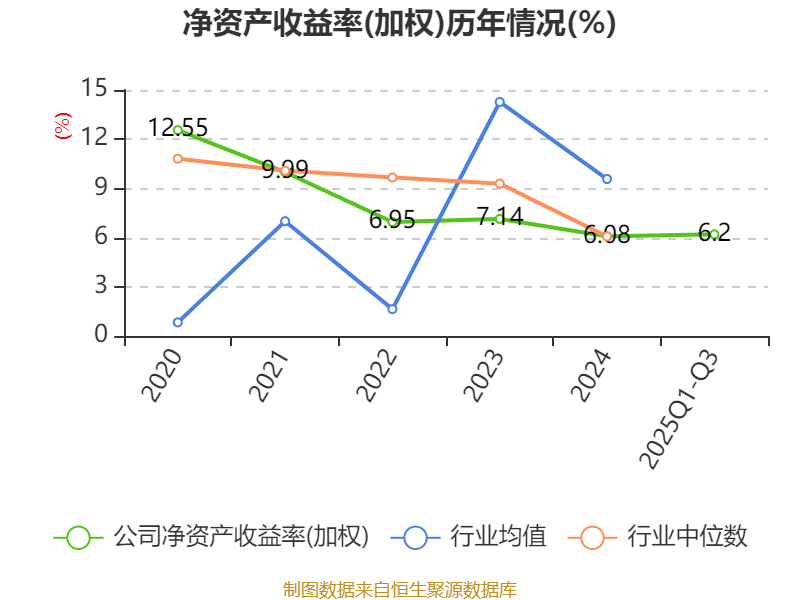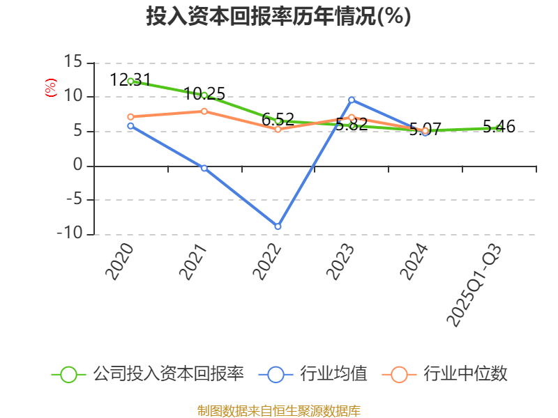 盈利能力方面, 2025年前三季度公司加权平均净资产收益率为6.2%,同比上升1.3个百分点。公司2025年前三季度投入资本回报率为5.46%,较上年同期上升1.46个百分点。