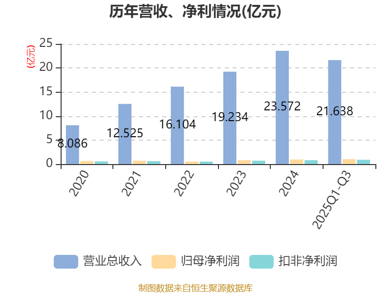 中证智能财讯曼卡龙(300945)10月30日披露2025年第三季度报告。前三季度公司实现营业总收入21.64亿元,同比增长29.30%;归母净利润1.02亿元,同比增长32.58%;扣非净利润8971.03万元,同比增长26.47%;经营活动产生的现金流量净额为4308.07万元,同比下降28.47%;报告期内,曼卡龙基本每股收益为0.39元,加权平均净资产收益率为6.20%。