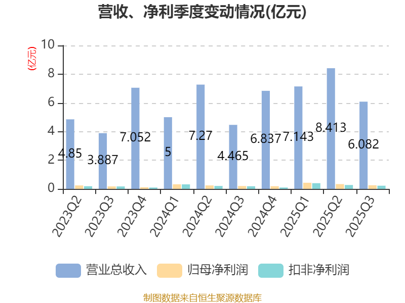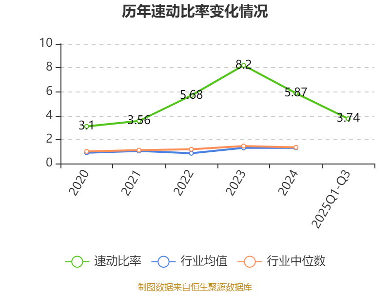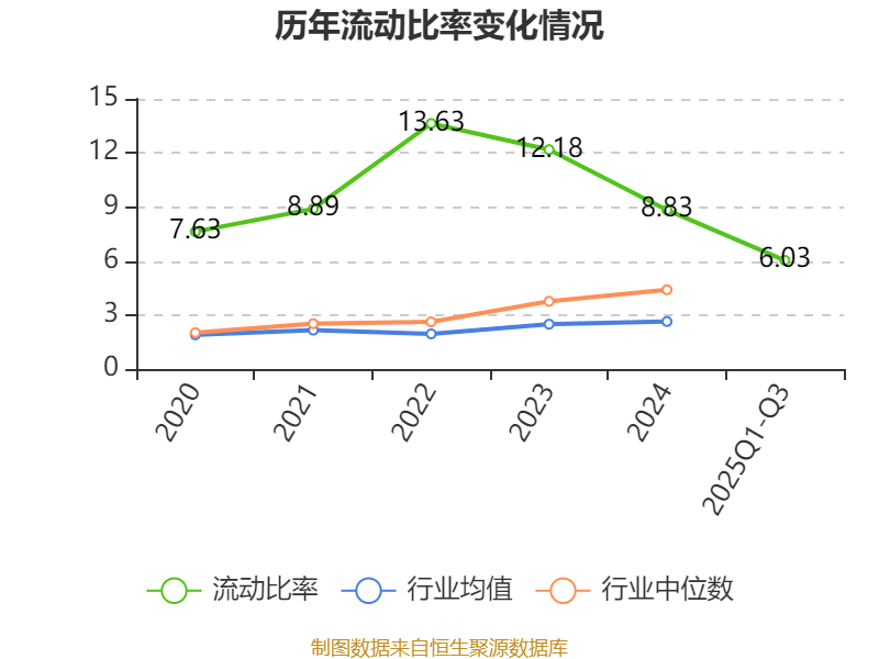 2025年前三季度,公司流动比率为6.03,速动比率为3.74。
