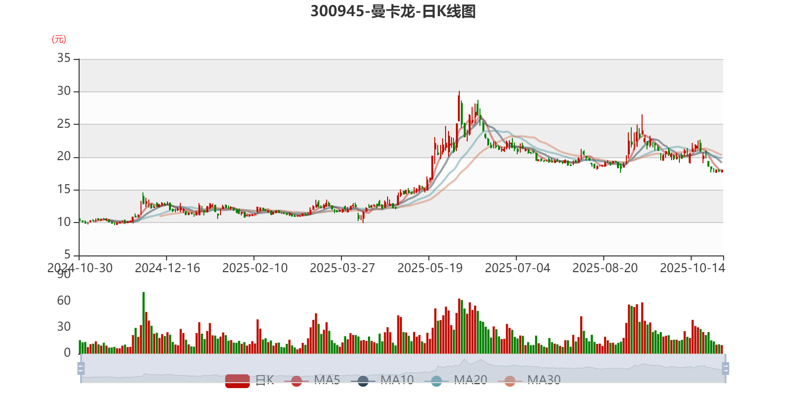 以10月29日收盘价计算,曼卡龙目前市盈率(TTM)约为38.95倍,市净率(LF)约2.84倍,市销率(TTM)约1.66倍。