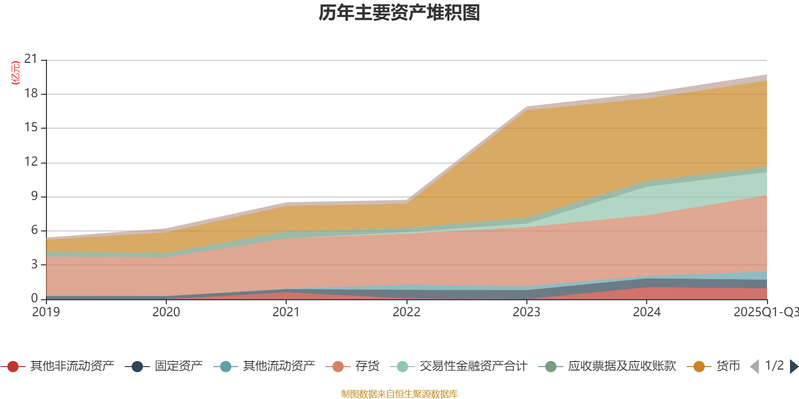 资产重大变化方面,截至2025年三季度末,公司存货较上年末增加25.83%,占公司总资产比重上升4.54个百分点;交易性金融资产合计较上年末减少19.2%,占公司总资产比重下降3.57个百分点;其他流动资产较上年末增加232.82%,占公司总资产比重上升2.45个百分点;货币资金较上年末增加5.36%,占公司总资产比重下降1.33个百分点。