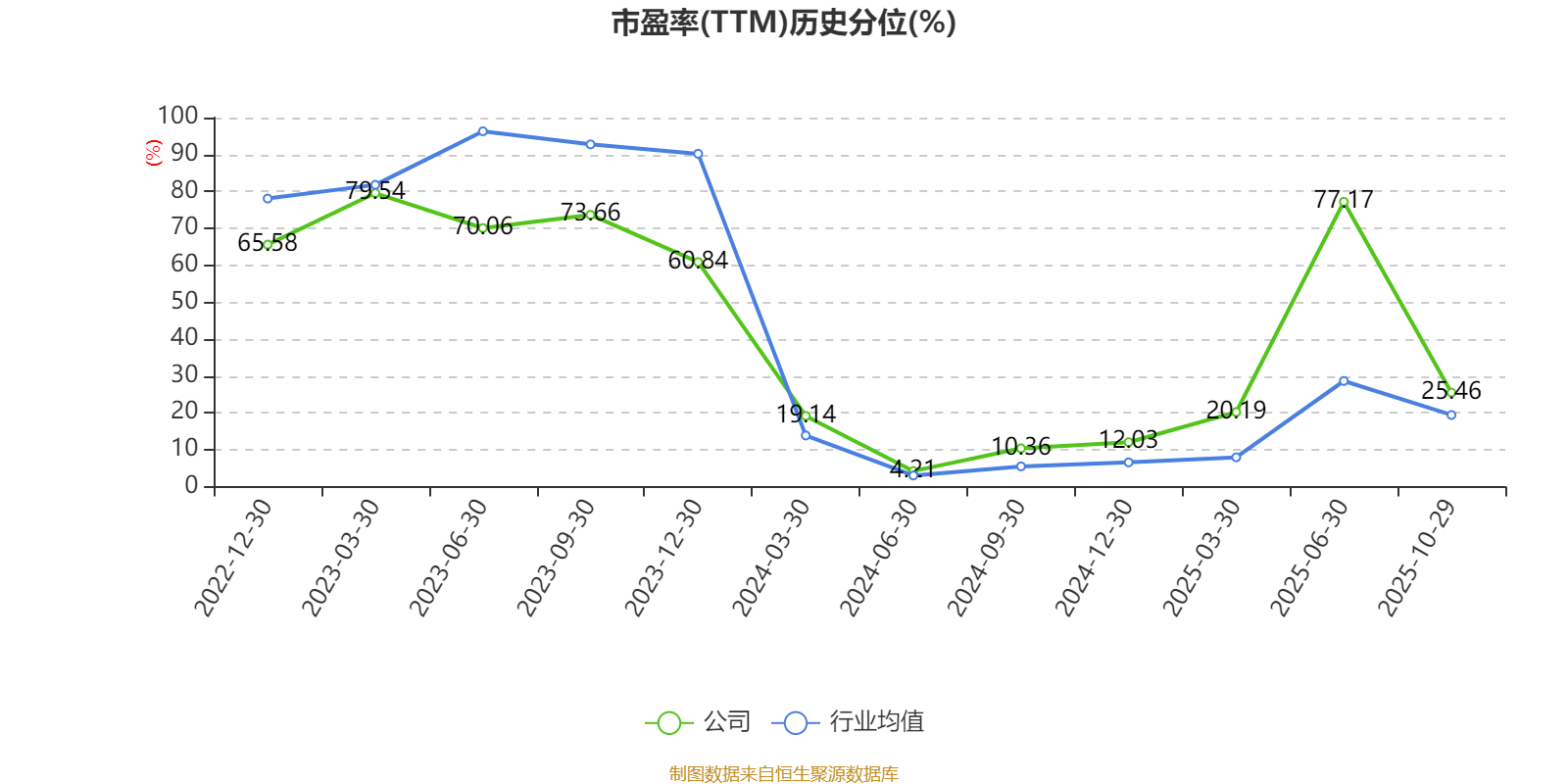 市盈率、市净率为负时,不显示当期分位数,会导致折线图中断。
