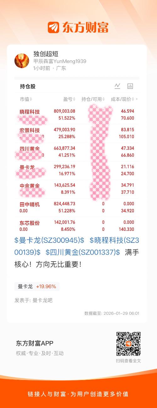 $曼卡龙(SZ300945)$  $晓程科技(SZ300139)$  $四川黄金(SZ001337)$  满手核心!方向无比重要!