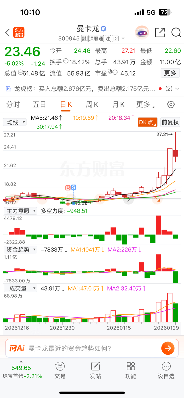 $曼卡龙(SZ300945)$ 年底最后一天进去的!当时为了博一个开门红,高开就直接卖了,没想到月初涨到月底!