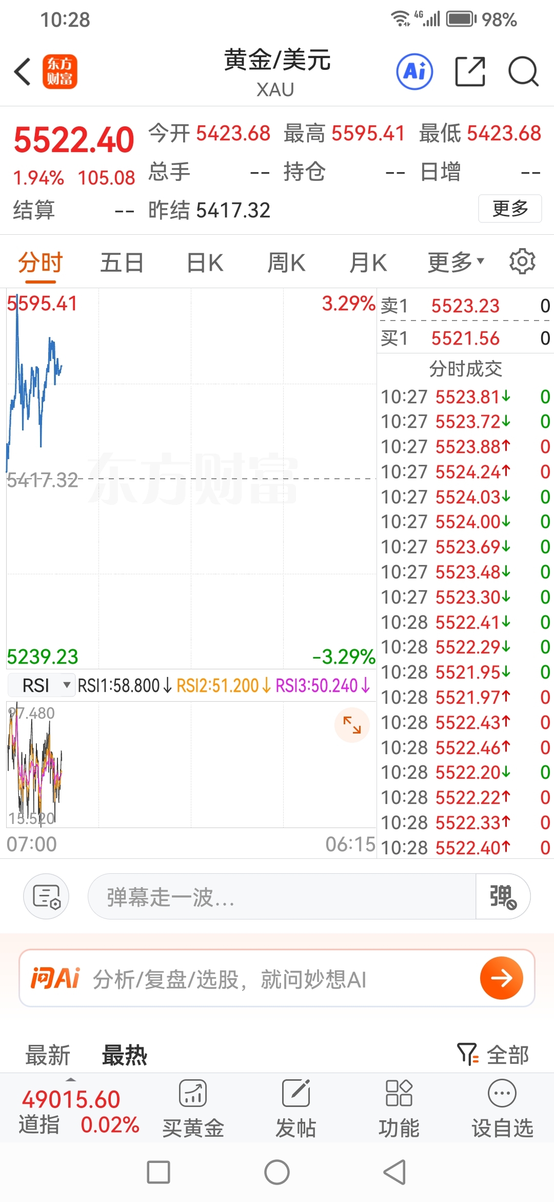 请看图还在继续涨昨天金价收盘价与现在涨幅1天内涨了260还在继续涨今天30094
