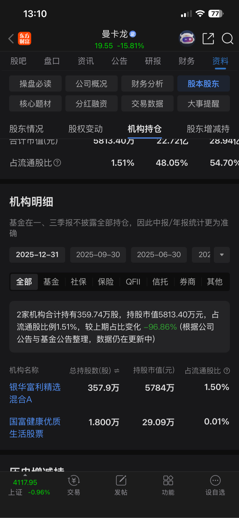 $曼卡龙(SZ300945)$ 社保基金已经走了