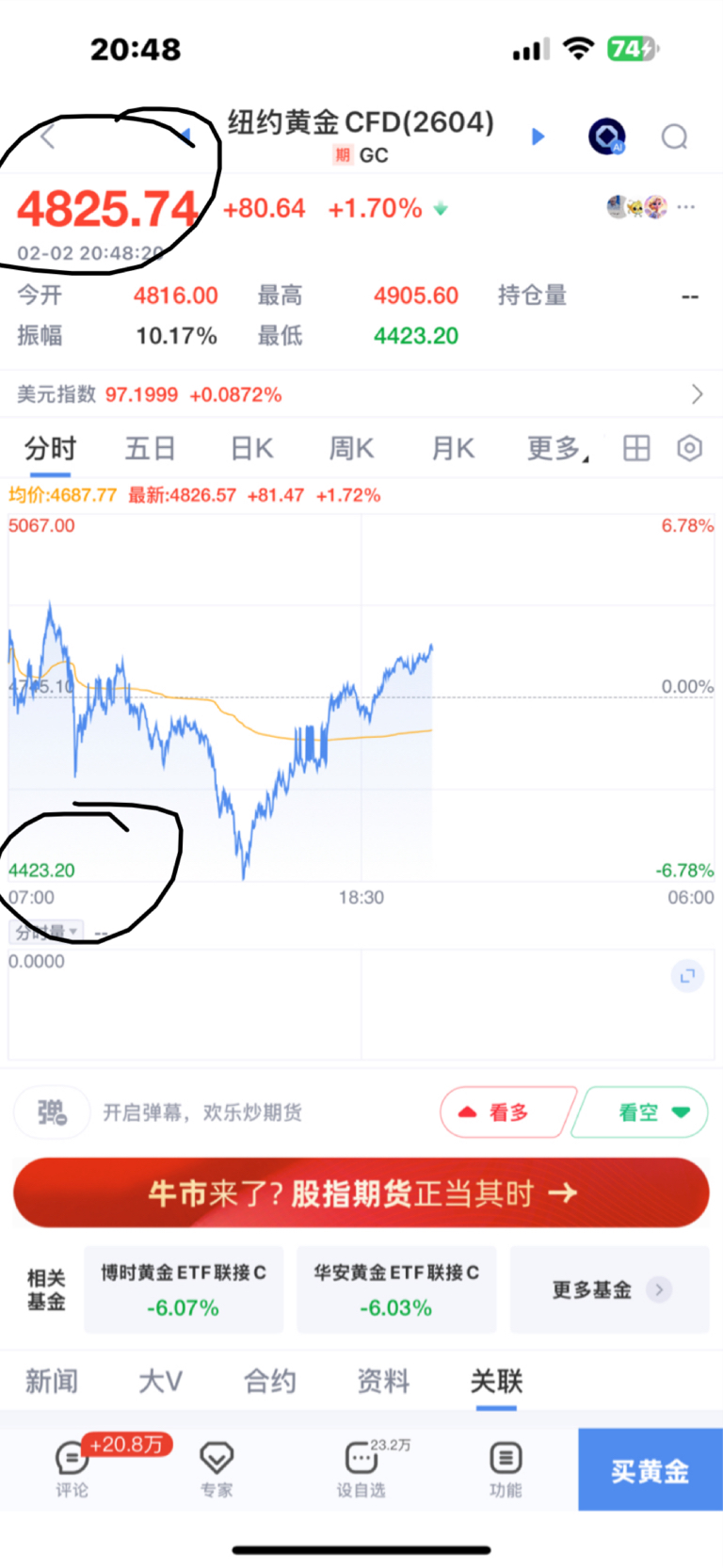 全世界合起伙来收割亚洲,收盘后黄金最低点涨了将近10%4423.2×1.1=48