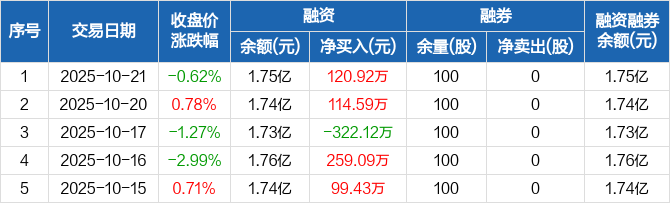 恒而达:融资净买入120.92万元,融资余额1.75亿元(10-21)