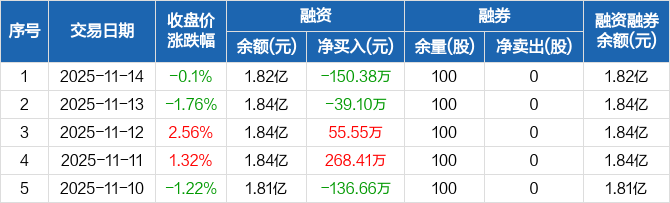 恒而达:融资净偿还150.38万元,融资余额1.82亿元(11-14)