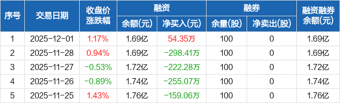 恒而达:融资净买入54.35万元,融资余额1.69亿元(12-01)