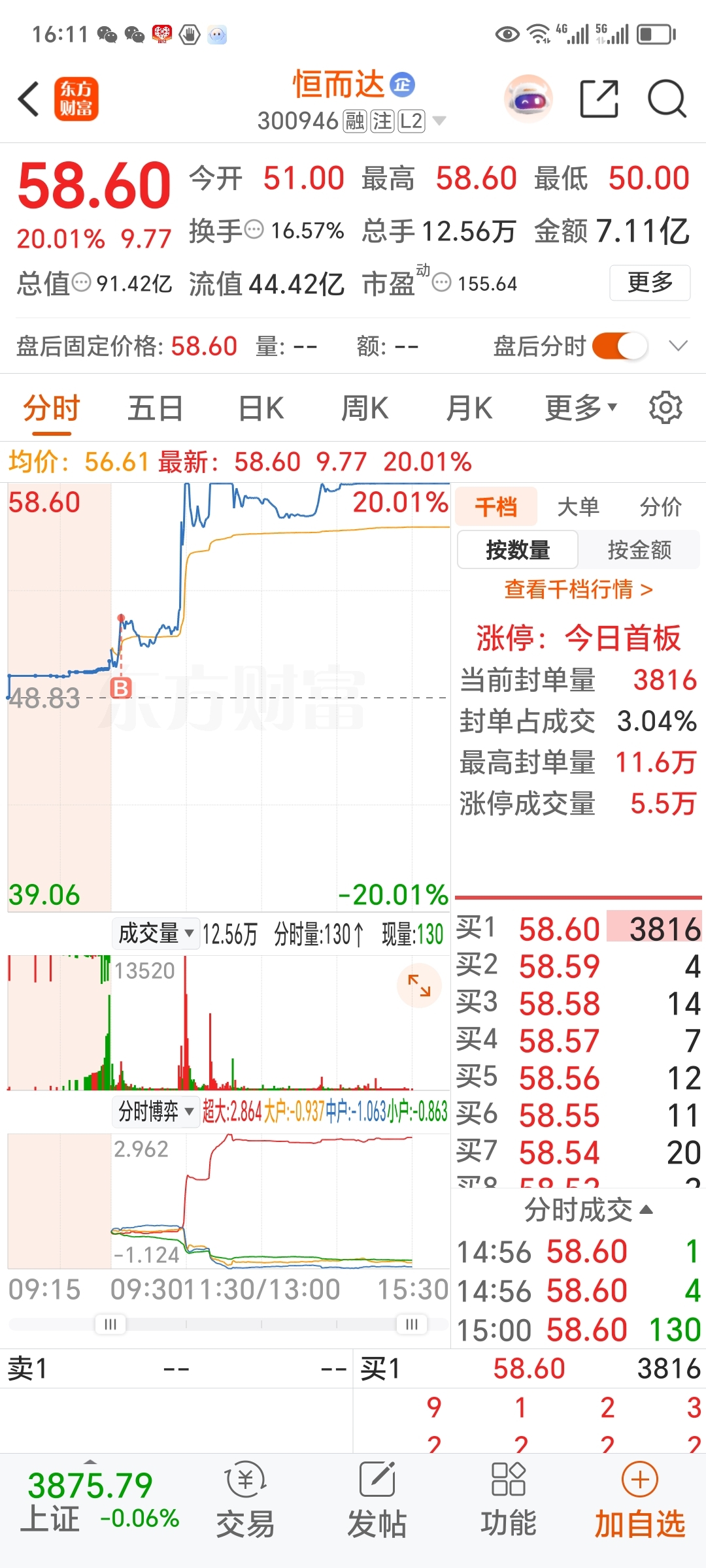 $恒而达(SZ300946)$ 这么点封单量!!!主力今天涨停板出货,请教一下各位大神!明天还能出来吗???