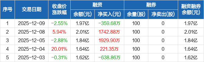 恒而达:融资净偿还359.68万元,融资余额1.97亿元(12-09)