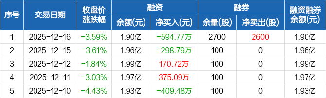 恒而达:融资净偿还594.77万元,融资余额1.9亿元(12-16)