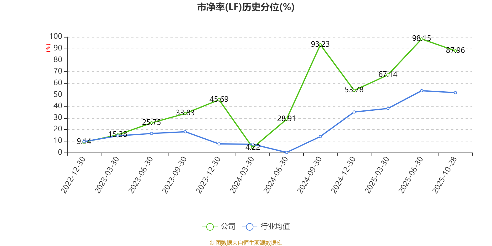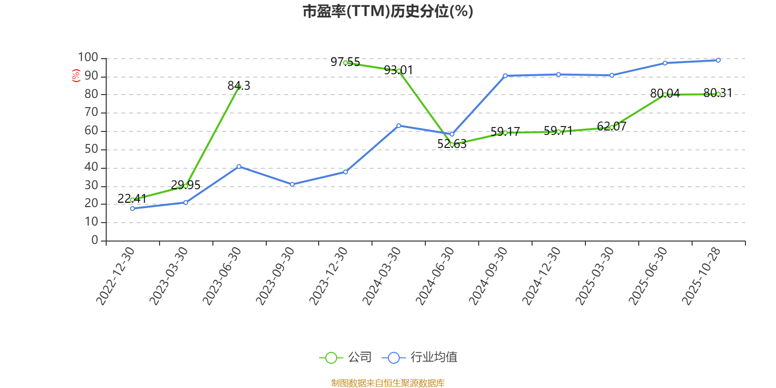 市盈率、市净率为负时,不显示当期分位数,会导致折线图中断。