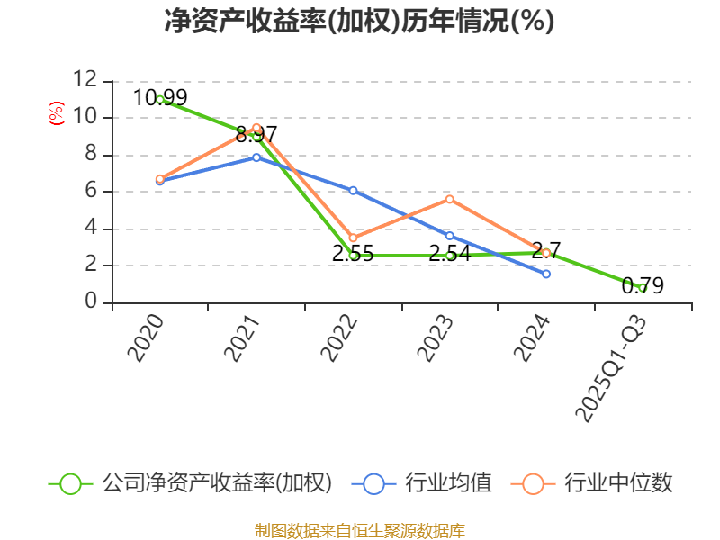 盈利能力方面, 2025年前三季度公司加权平均净资产收益率为0.79%,同比下降0.95个百分点。公司2025年前三季度投入资本回报率为1.92%,较上年同期下降0.29个百分点。