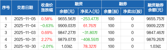 德必集团:融资净偿还253.47万元,融资余额9655.56万元(11-05)