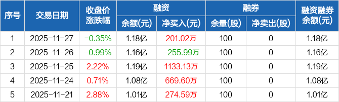 德必集团:融资净买入201.02万元,融资余额1.18亿元(11-27)