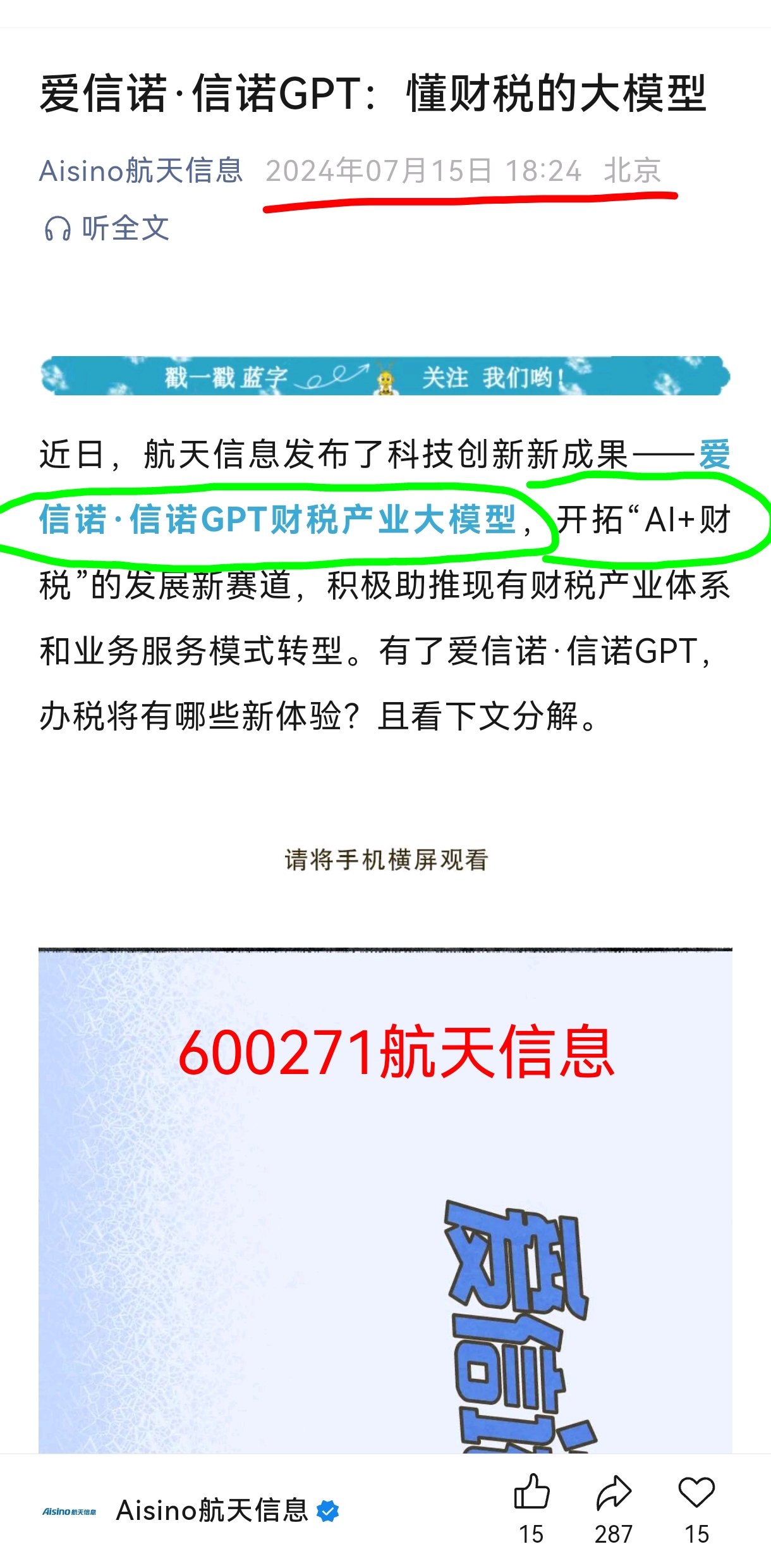 600271航天信息在《AI财税》市场占有率是65%