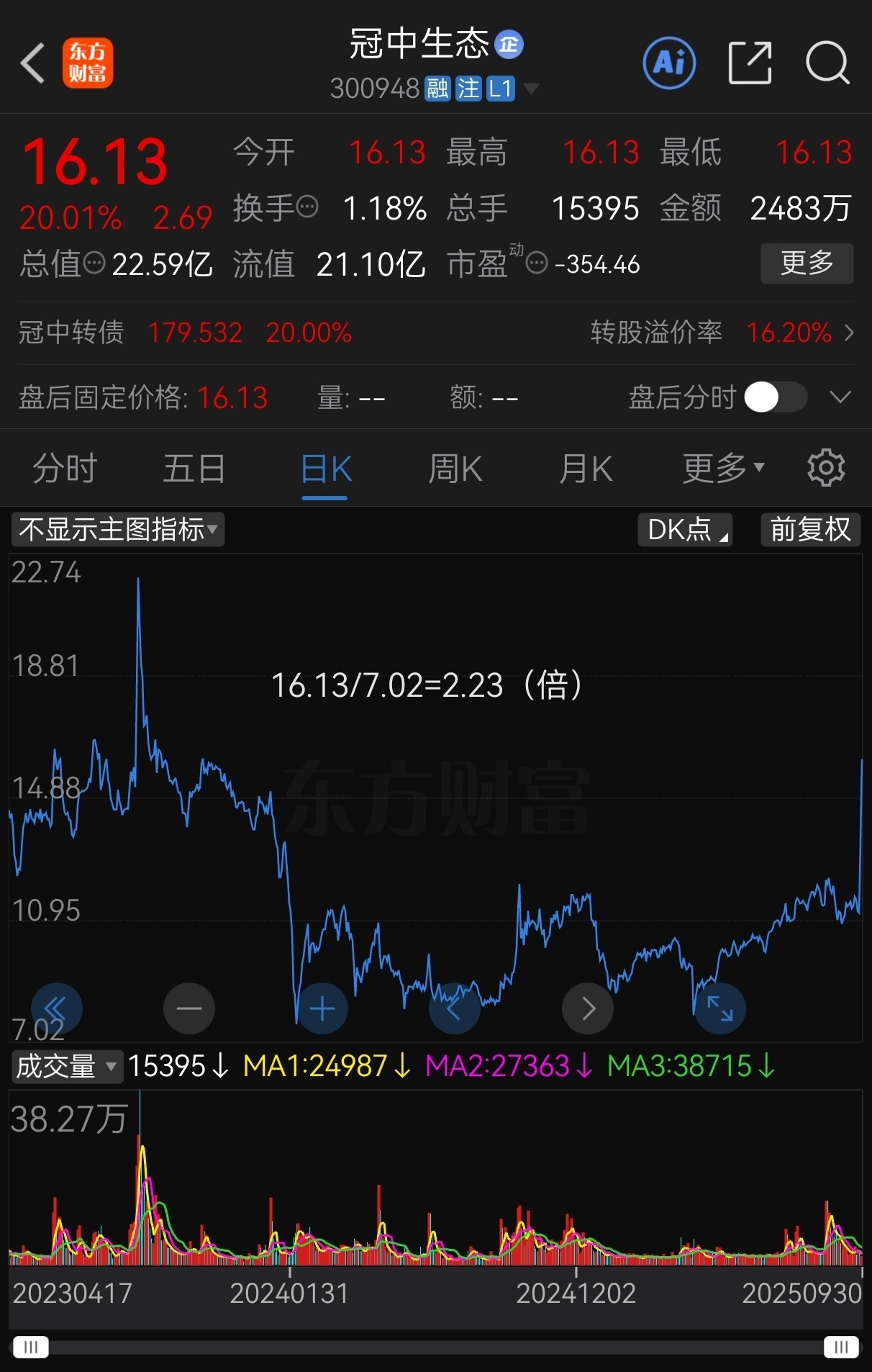 故目前股友们对冠中生态未来的连板数和最大的上涨空间之预期值肯定是保守了。