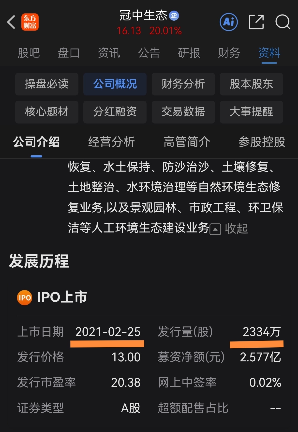进一步比较,冠中生态与天普股份、上纬新材在上市时间、自由流通盘等特别是题材强度与
