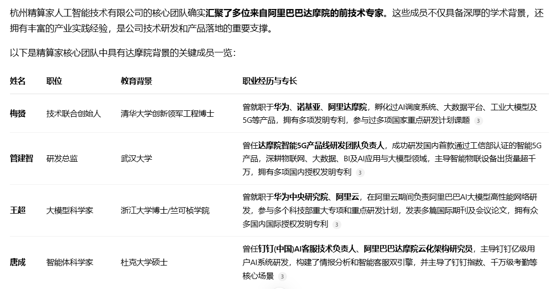 杭州精算家人工智能技术有限公司的核心团队确实汇聚了多位来自阿里巴巴达摩院的前技术专家。如下: