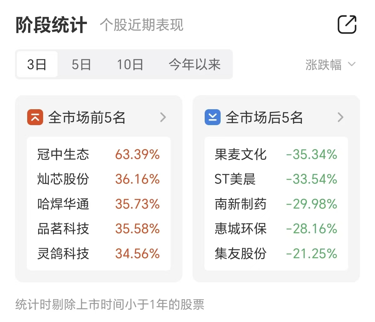 与此同时,近十个交易日涨幅前五名的个股分别为品茗科技、冠中生态、华建集团、养元饮品、哈焊华通。