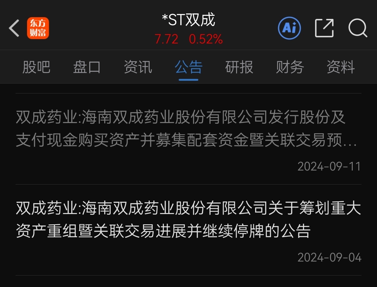 一、去年9.24行情之前即9月11日公告并购重组半导体(最火热题材),开启连续涨停之旅