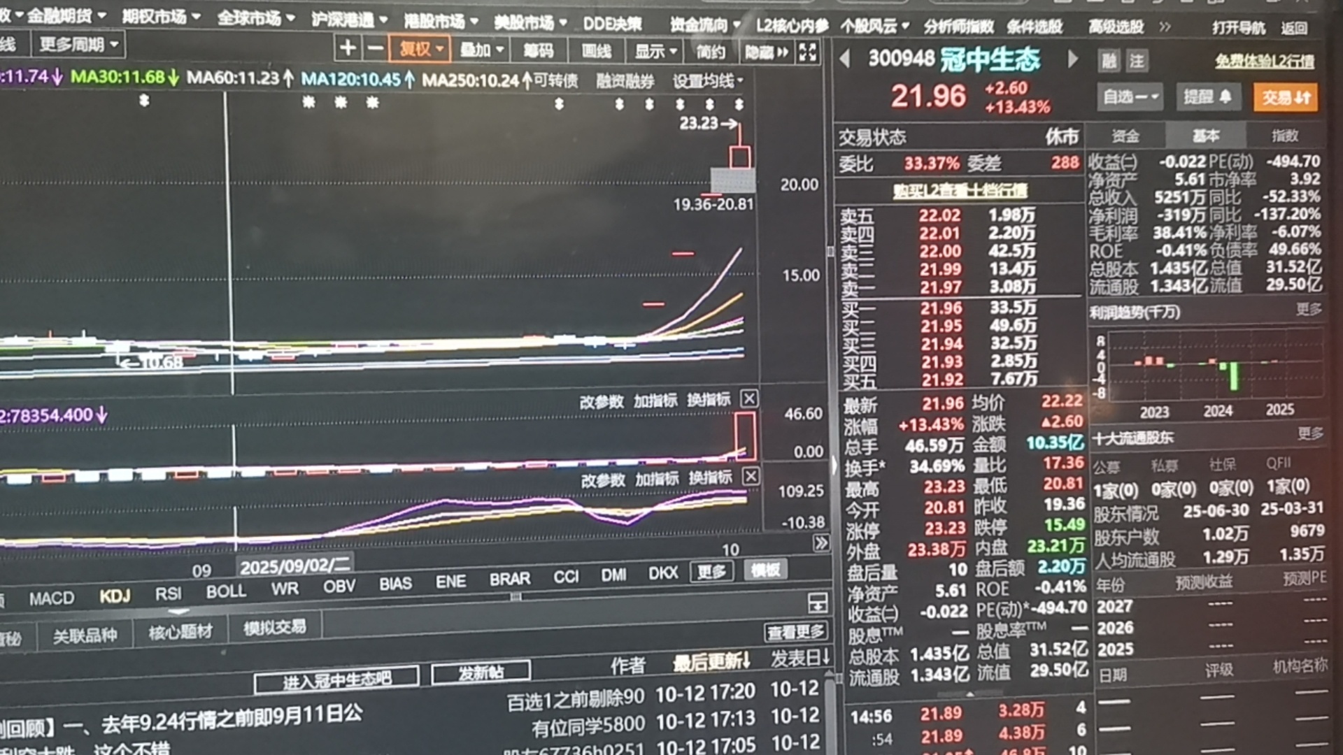 冠中生态,够狠,4天涨100%,10月10日庄家主力大举出货!