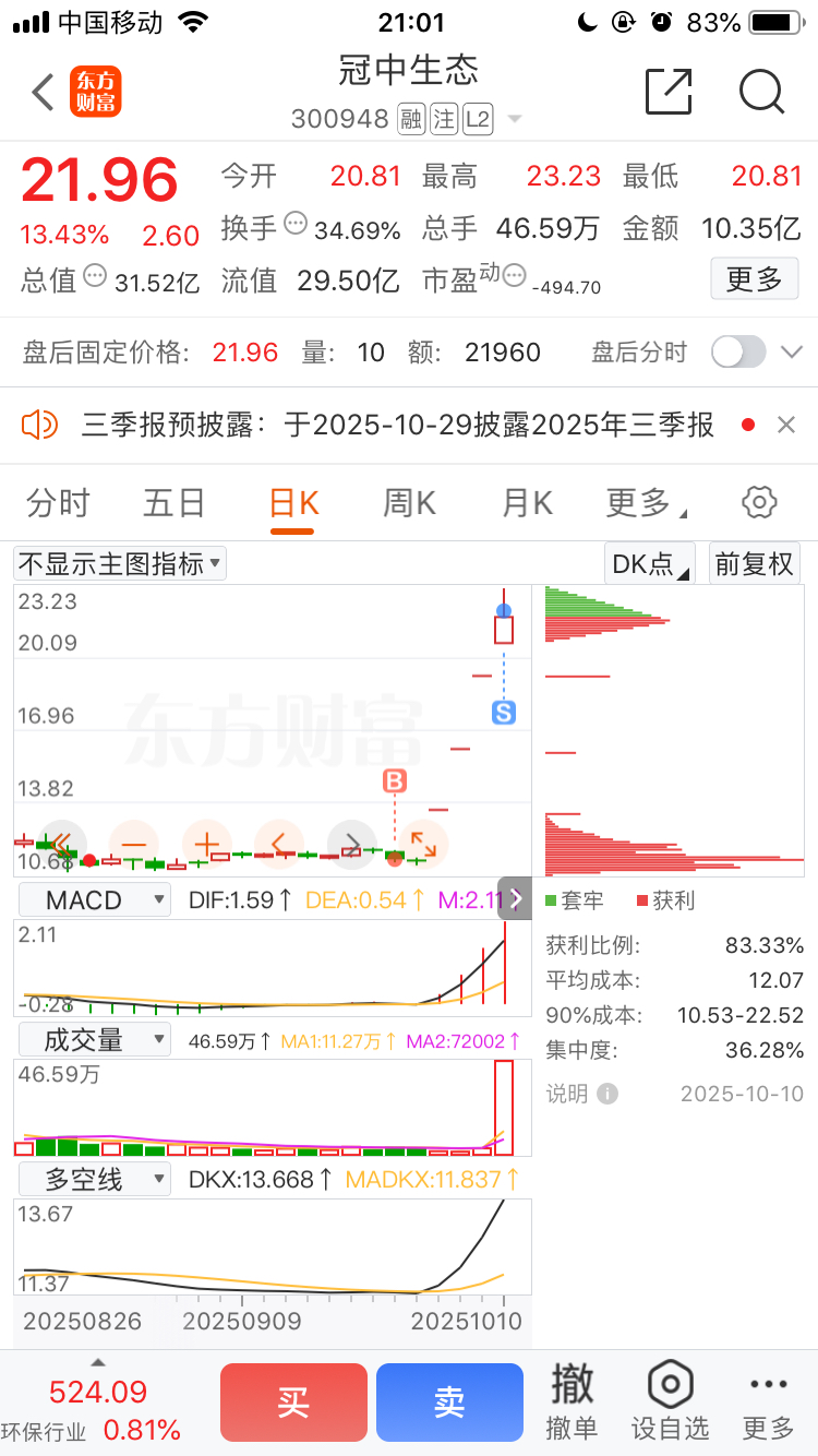 $冠中生态(SZ300948)$ 纪念一下第二个4天翻倍,感谢