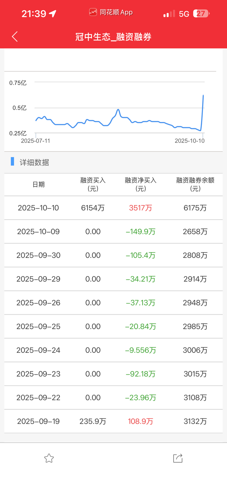 $冠中生态(SZ300948)$ 上周五大量的融资买入,看下面的数据,#强势机会# 未来值得看好和期待。