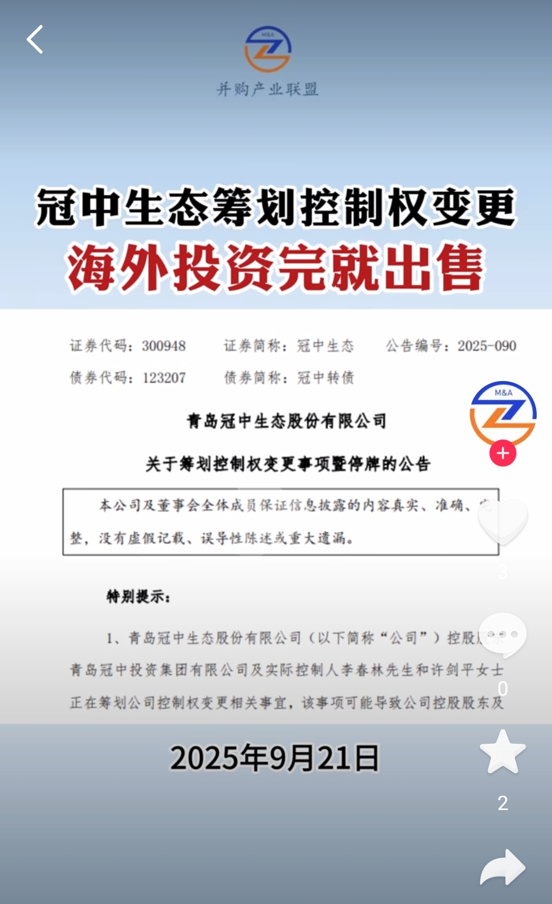 $冠中生态(SZ300948)$ 咋突然就停牌了