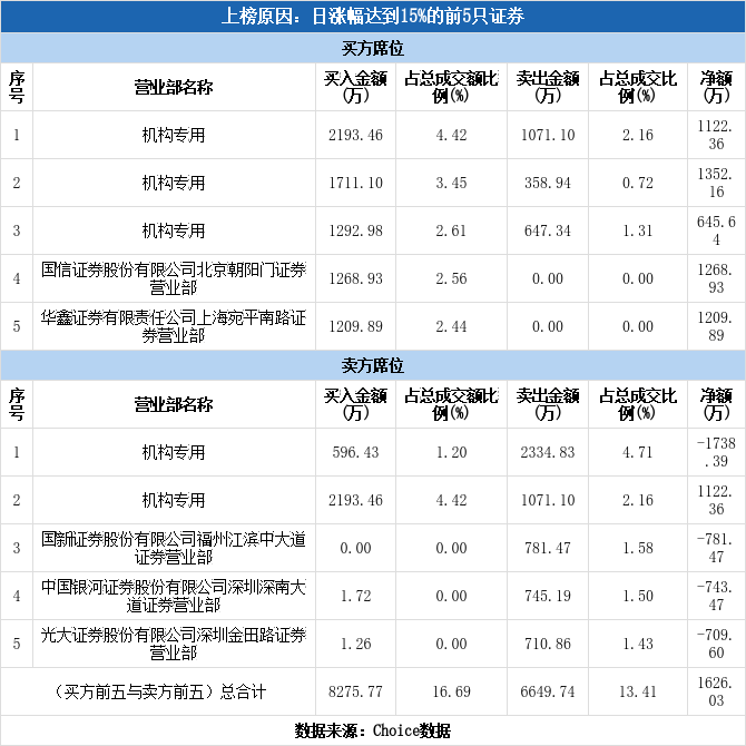 多主力现身龙虎榜,冠中生态涨停(10-21)
