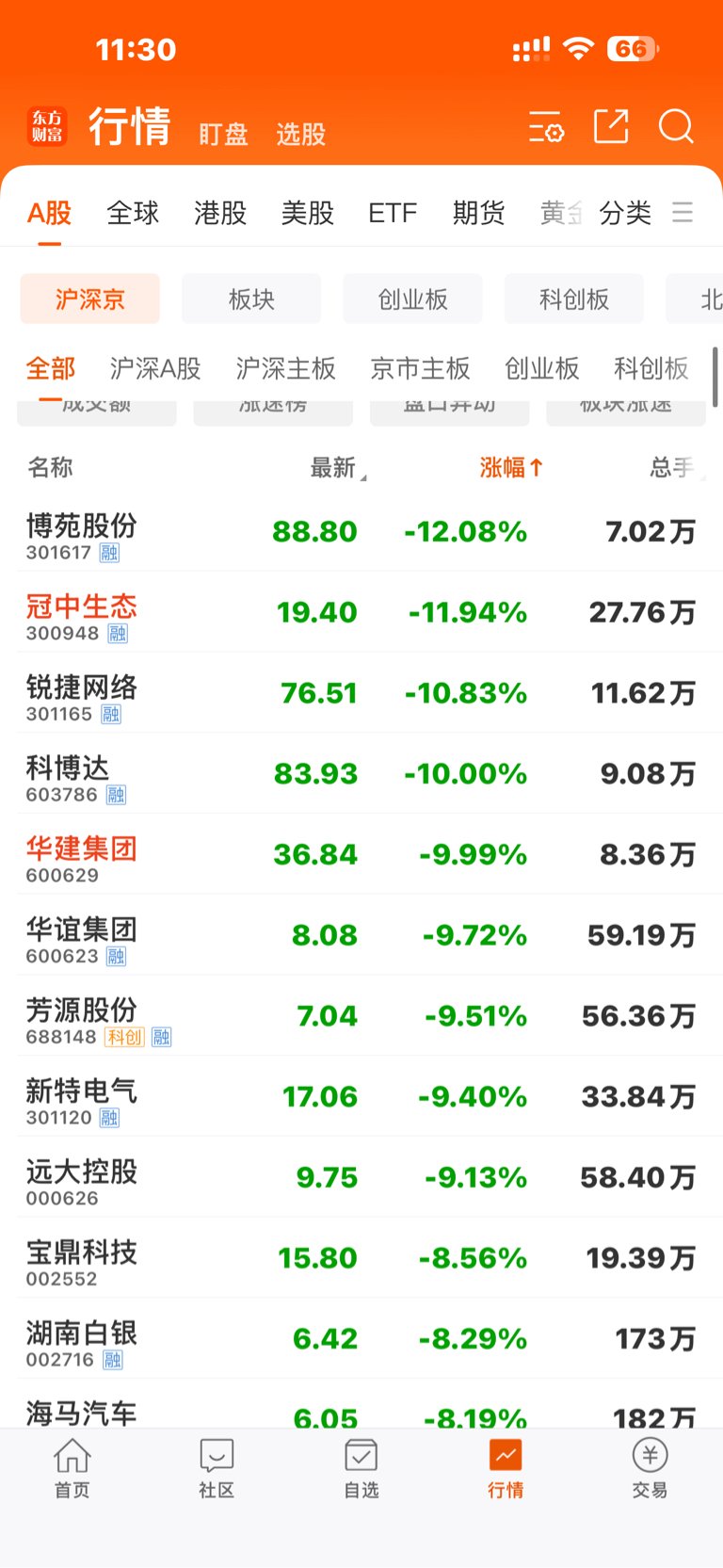 $冠中生态(SZ300948)$ 跌幅全市倒数第二牛拉斯