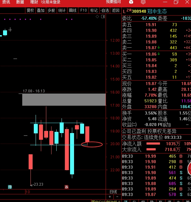$冠中生态(SZ300948)$ 第一目标触摸20(减仓),第二目标25