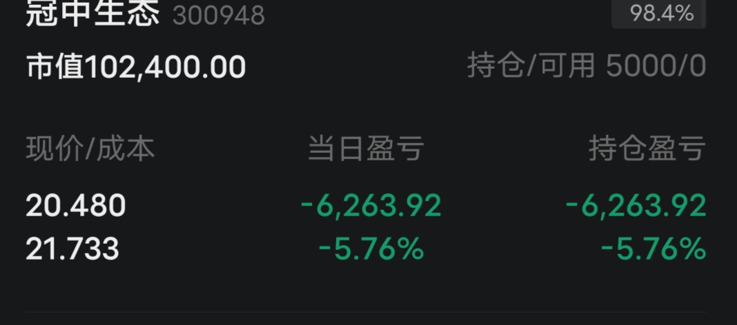 $冠中生态(SZ300948)$ 一次的主动换来一辈子的自卑!!追涨杀跌要谨慎啊!!!