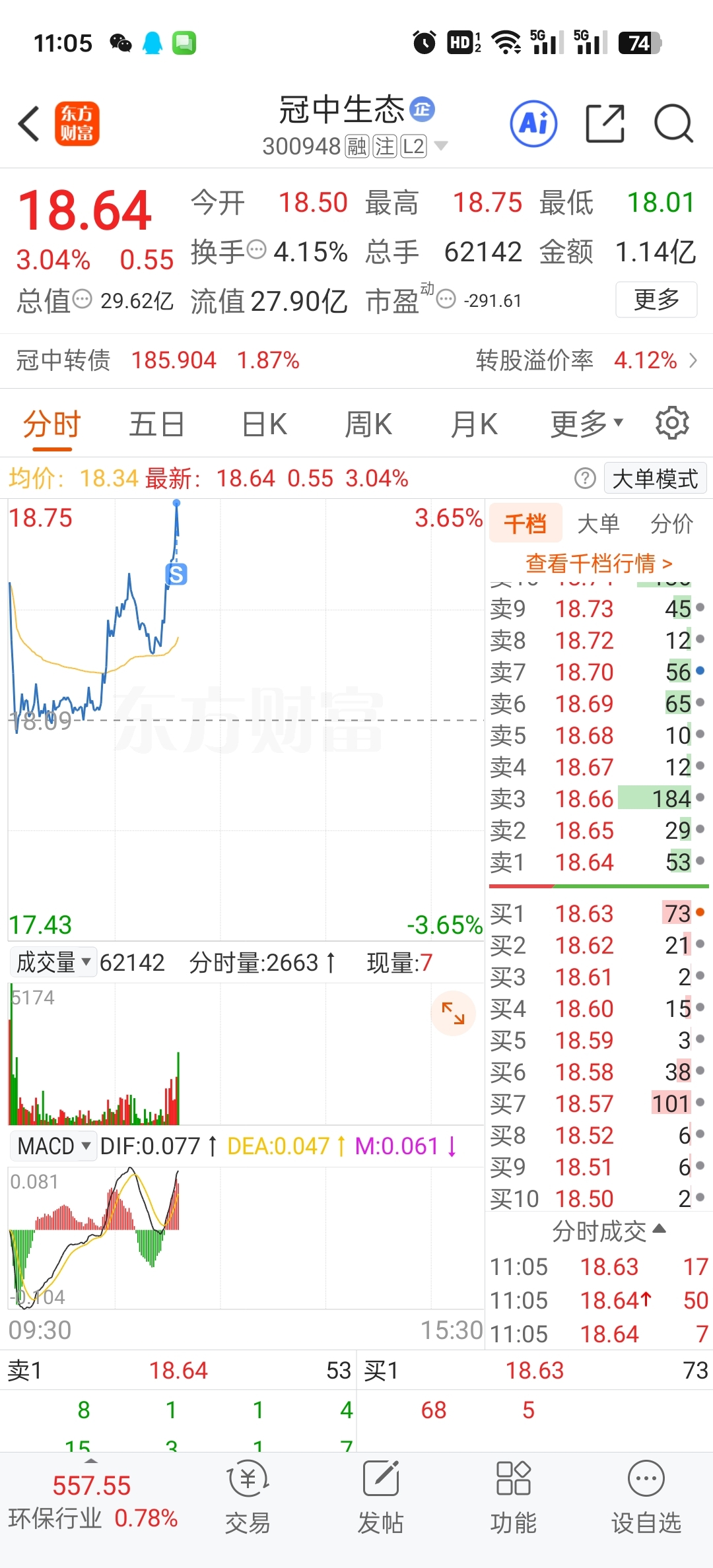 $冠中生态(SZ300948)$ 18.74解套,舒服