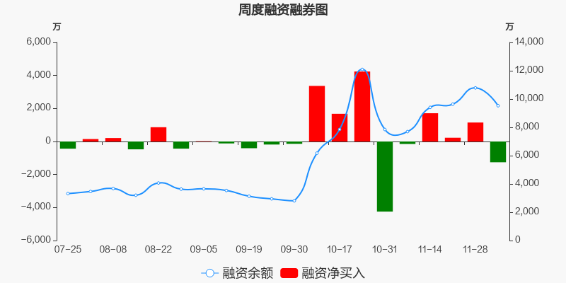 冠中生态本周(2025/12/01-2025/12/05)累计涨幅达6%,截至12月5日最新股价报收19.27元。从增量上来看,12月1日至12月4日融资买入交易规模1.28亿元,融资偿还规模1.41亿元,期内融资净偿还1257.82万元。从存量上来看,截止12月7日,冠中生态融资融券余额9530.07万元,其中融资余额规模9530.07万元,融券余额规模0元。