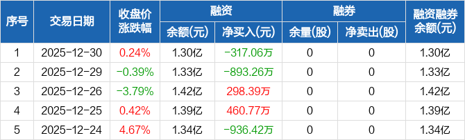 冠中生态:融资净偿还317.06万元,融资余额1.3亿元(12-30)