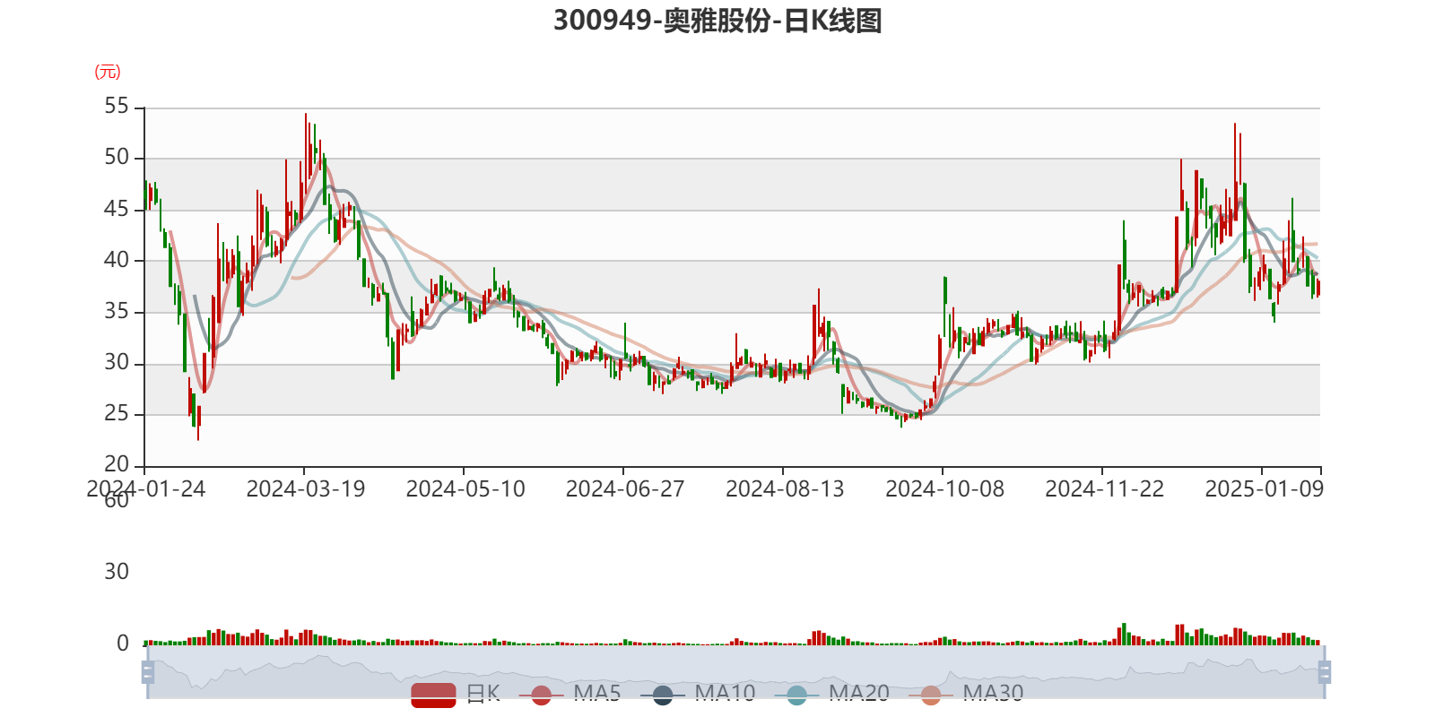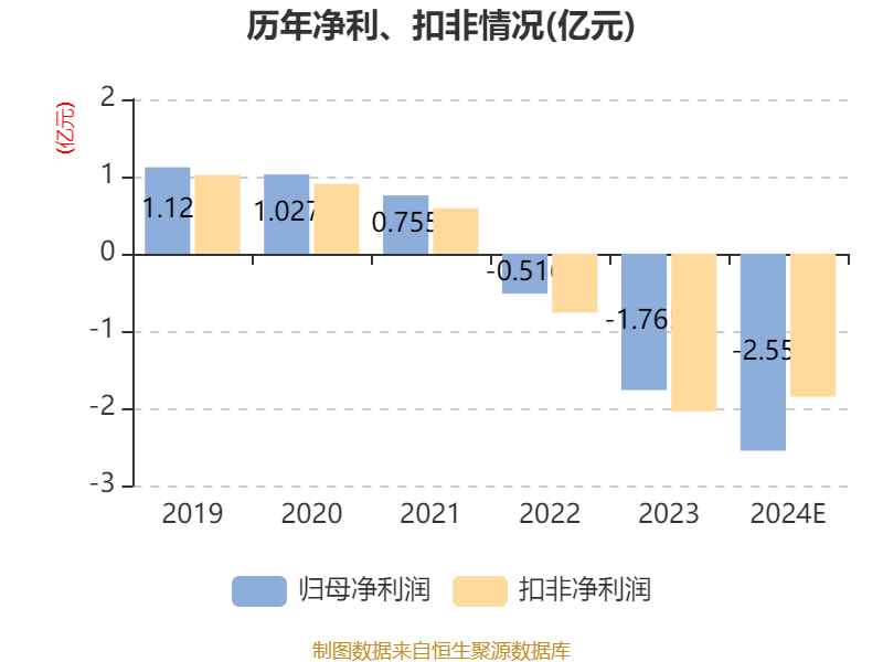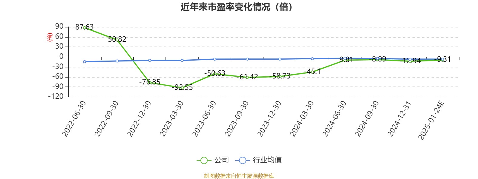 中证智能财讯奥雅股份(300949)1月24日晚间披露2024年度业绩预告,预计2024年归母净利润亏损2.1亿元至3亿元,上年同期亏损1.77亿元;扣非净利润亏损1.4亿元至2.3亿元,上年同期亏损2.04亿元。以1月24日收盘价计算,奥雅股份目前市盈率(TTM)约为-7.66倍至-10.95倍,市净率(LF)约2.63倍,市销率(TTM)约5.12倍。