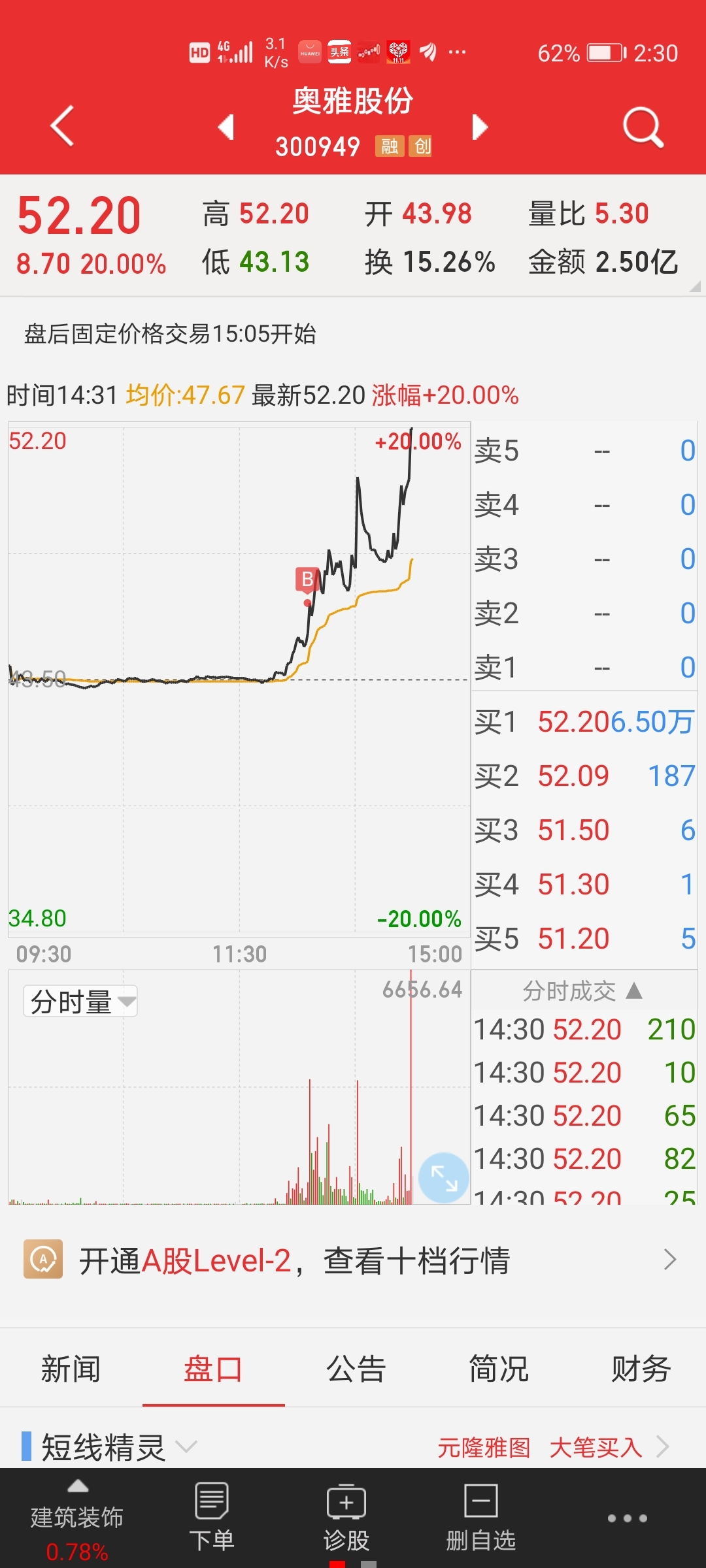 $奥雅股份(SZ300949)$ 看来明天大涨板上钉钉了