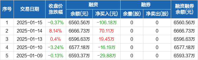 德固特:融资净偿还106.18万元,融资余额6560.56万元(01-15)