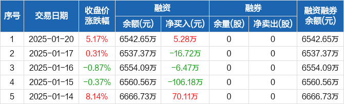 德固特:融资净买入5.28万元,融资余额6542.65万元(01-20)
