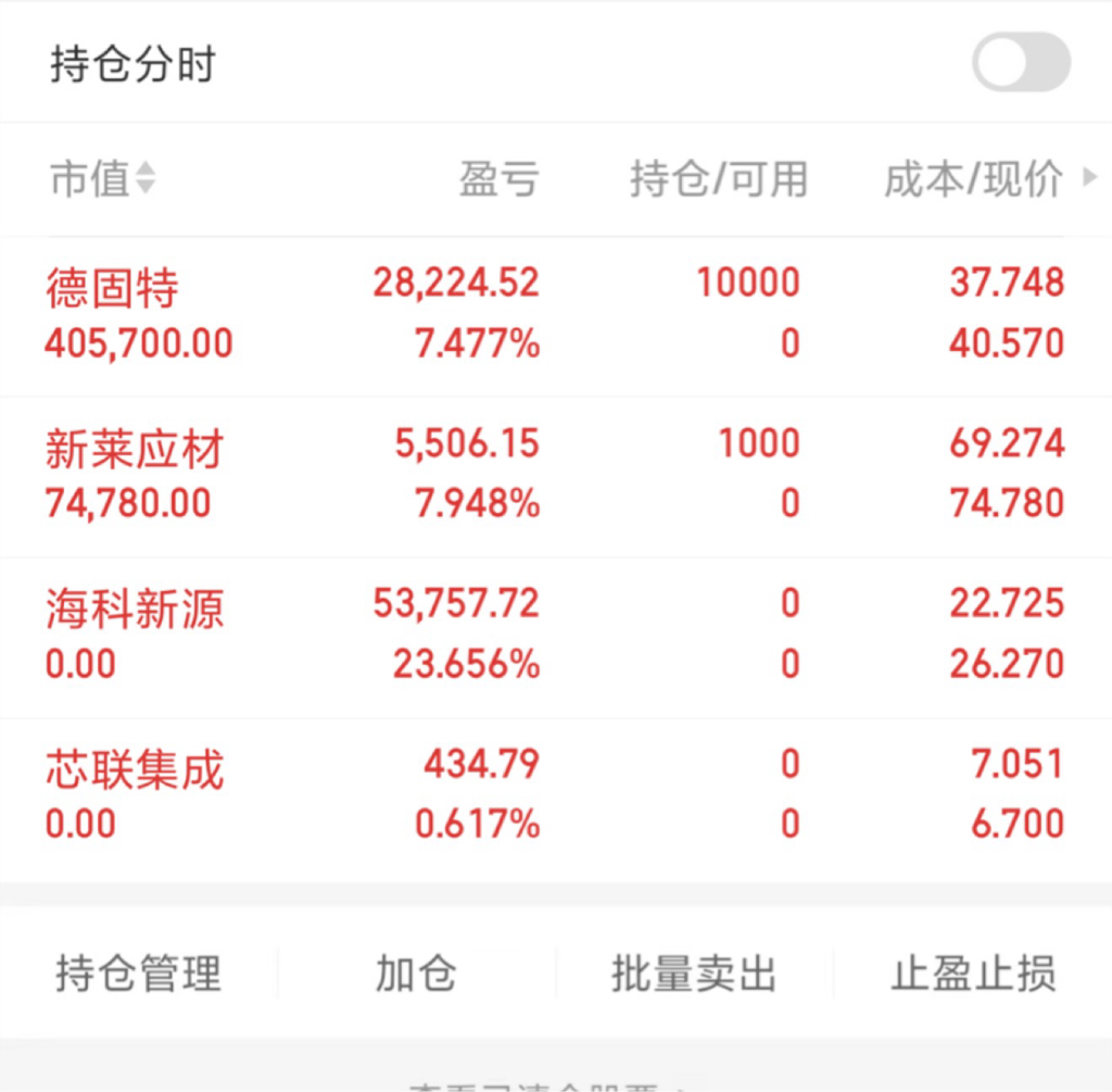• 卖出:海科新源 ,芯联集成