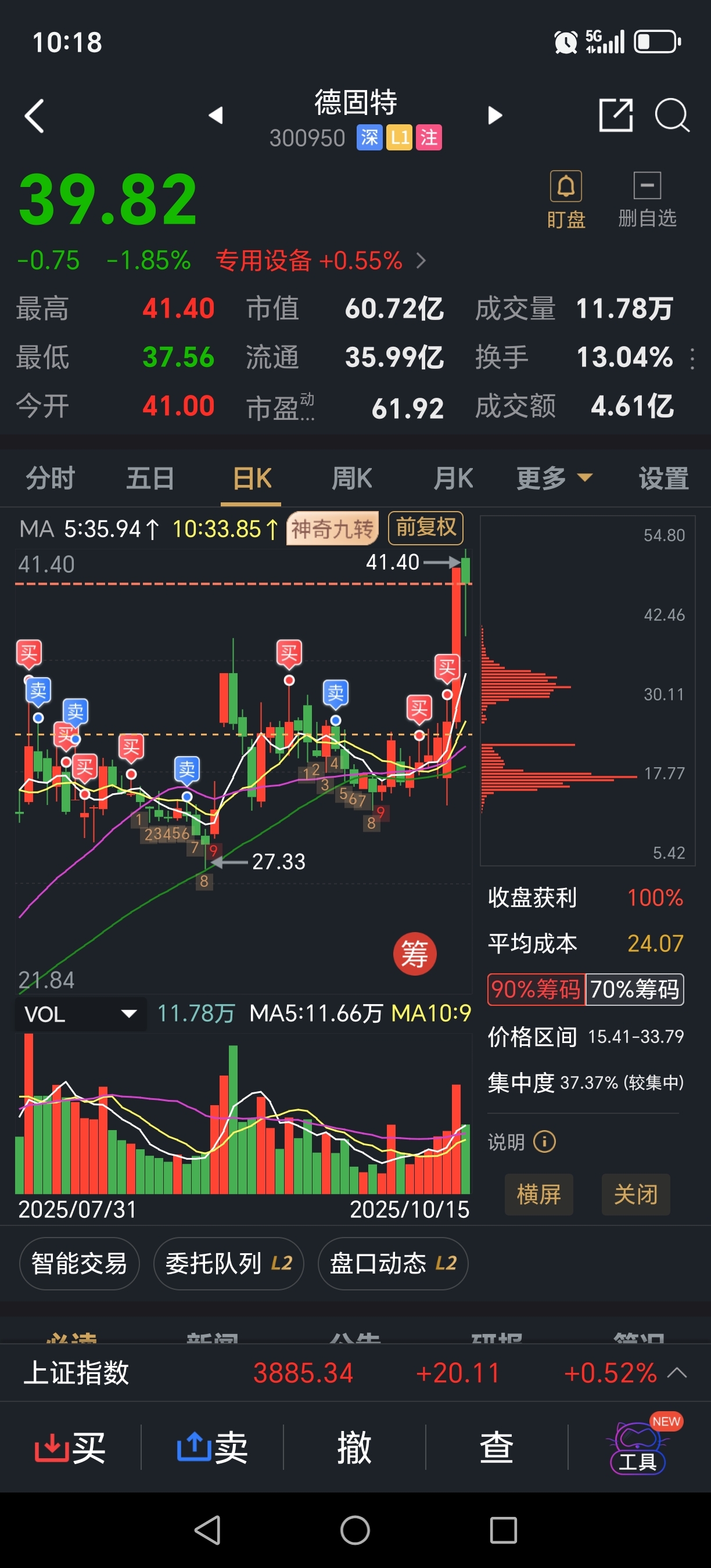 $德固特(SZ300950)$ 这主力一直这么磨叽拉胯,就不能趁势而起吗?早上这波下杀主力绝对不会跑的,只能是砸恐慌盘,现在很少套牢盘就应该砸盘下压然后直接拉起飞让做波段的拍大腿