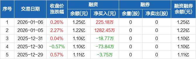 德固特:融资净买入225.18万元,融资余额1.25亿元(01-06)