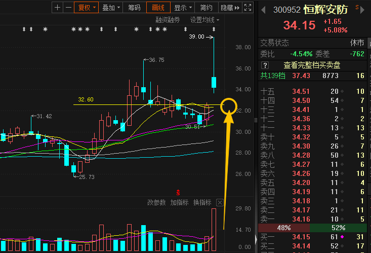 放量冲高回落,明细有资金被套,若是明天回踩到32.60左右,我认为短线可以低吸入场博弈反抽!