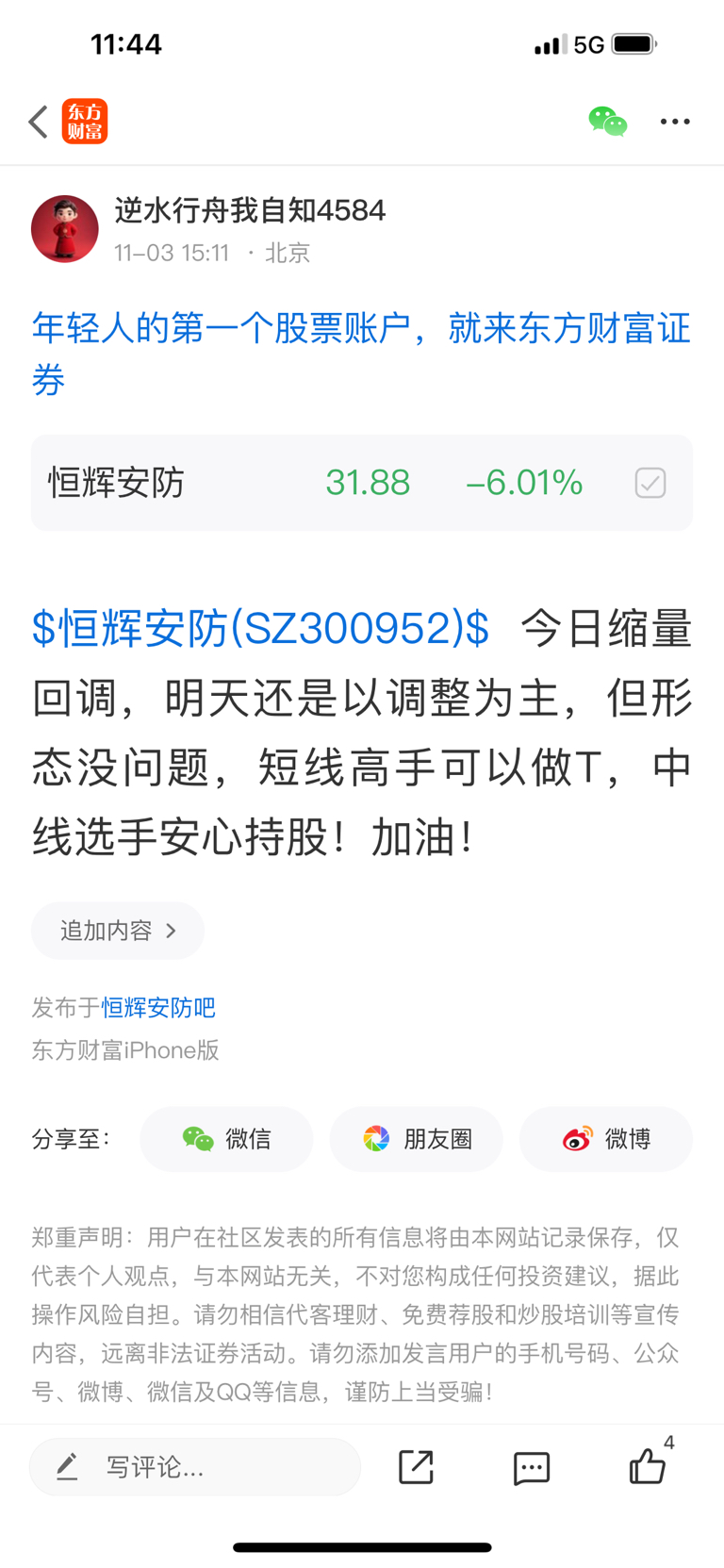 温馨提示: 1.根据《证券法》规定,禁止编造、传播虚假信息或者误导性信息,扰乱证券市场;2.用户在本社区发表的所有资料、言论等仅代表个人观点,与本网站立场无关,不对您构成任何投资建议。用户应基于自己的独立判断,自行决定证券投资并承担相应风险。《东方财富社区管理规定》