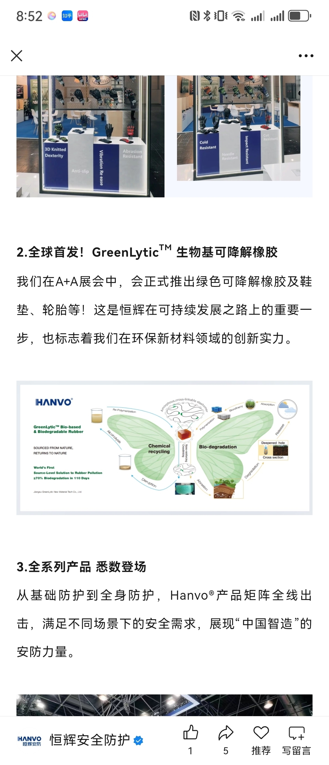 $恒辉安防(SZ300952)$ 正式推出可降解橡胶、鞋垫、轮胎。