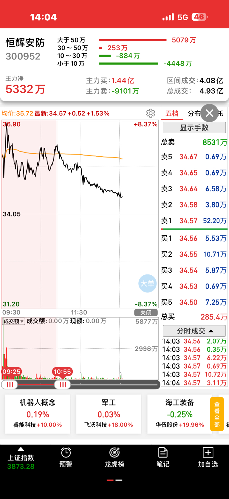 主力睡着了么?早盘成交4个亿,随后毫无承接,8000万成交砸了5个多点。